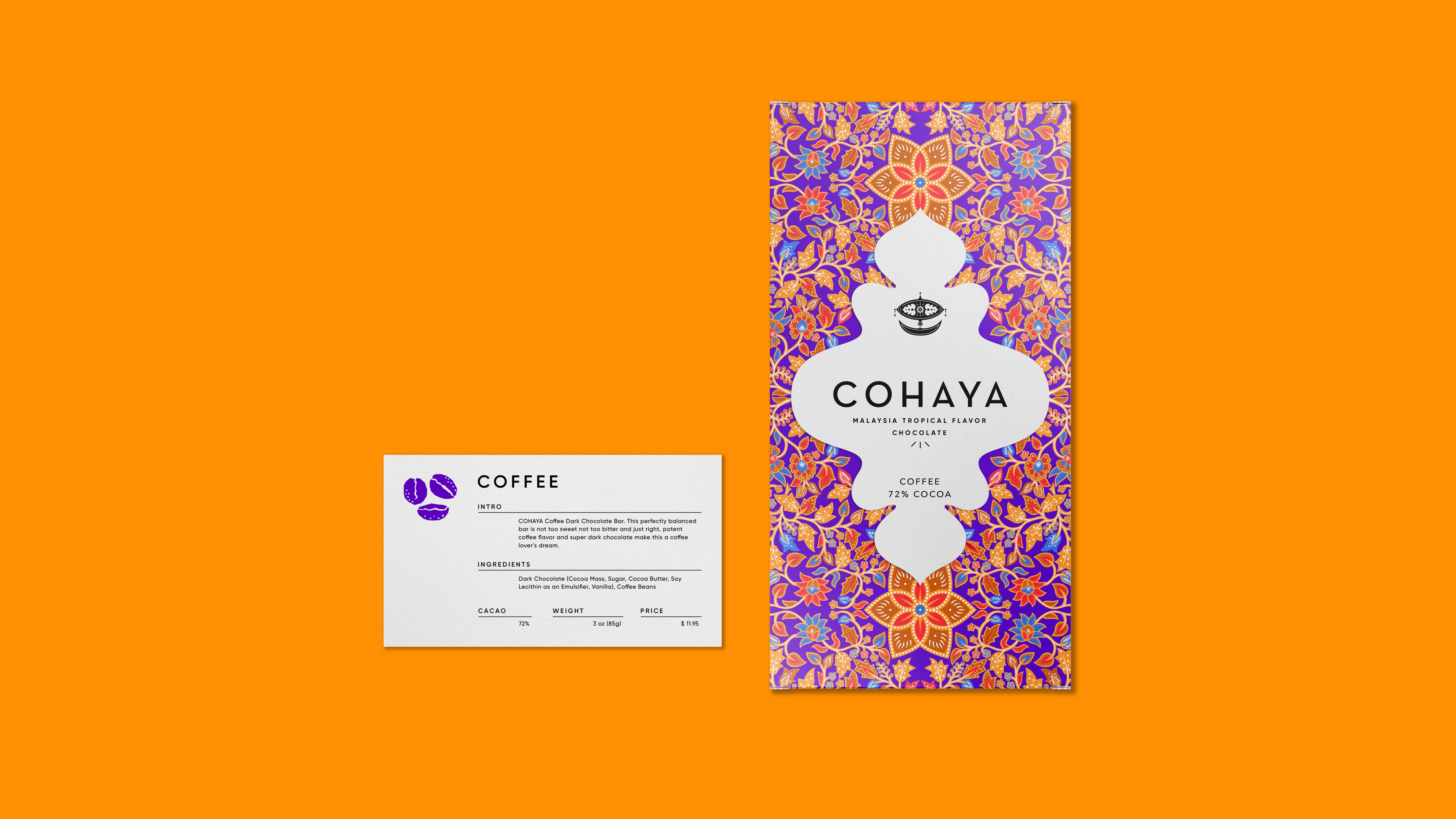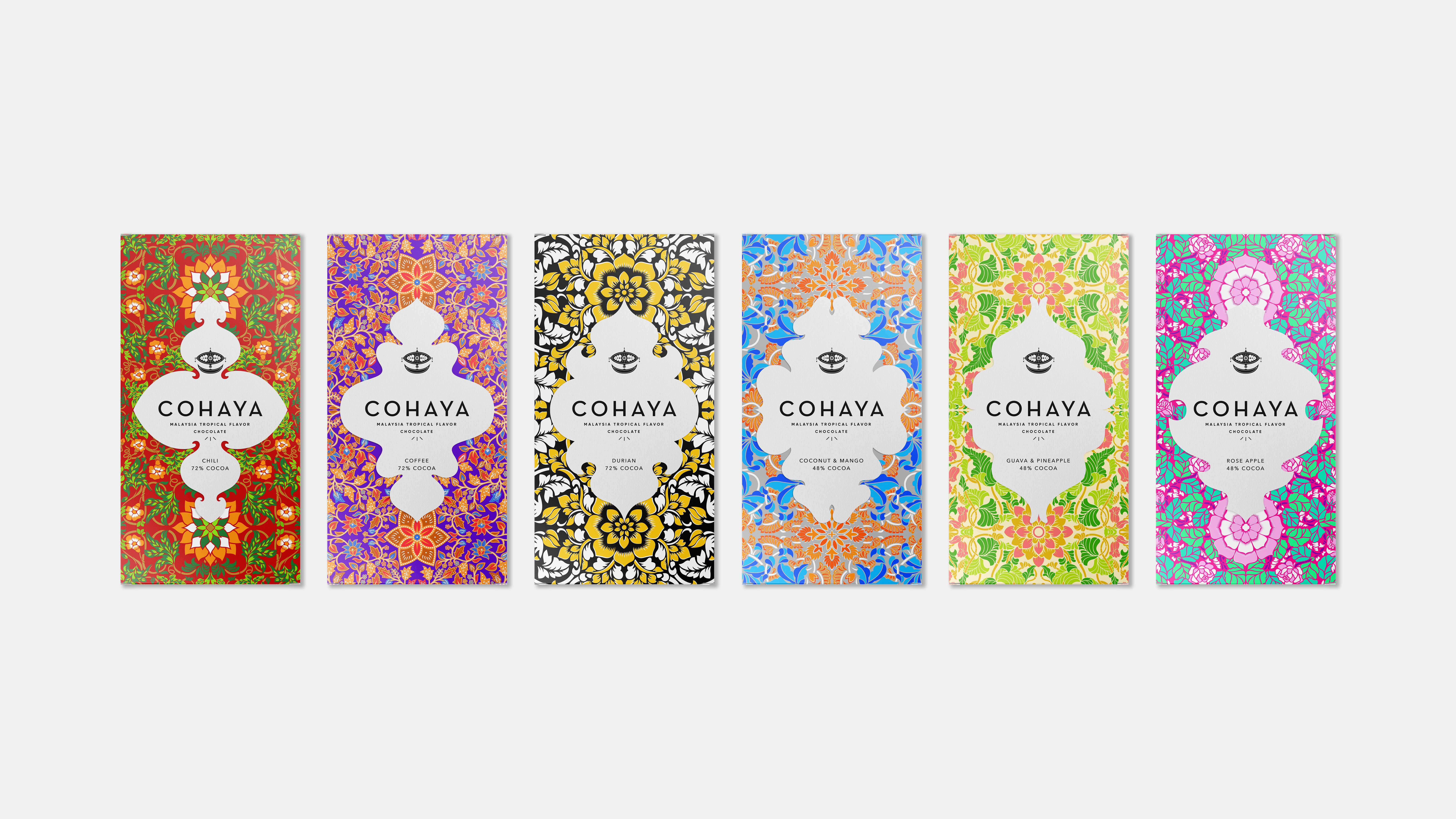 COHAYA is a tropical flavor chocolate company in Malaysia. The mission of the company is to highlight Malaysian cacao and bring them to the international level. The main idea of identity is Wau Bulan (a kind of kite), one of the most important symbols of Malaysia. Redesign the traditional patterns of Bulan for the packaging, let people enjoy the Malaysian national arts while eating the COHAYA chocolate.